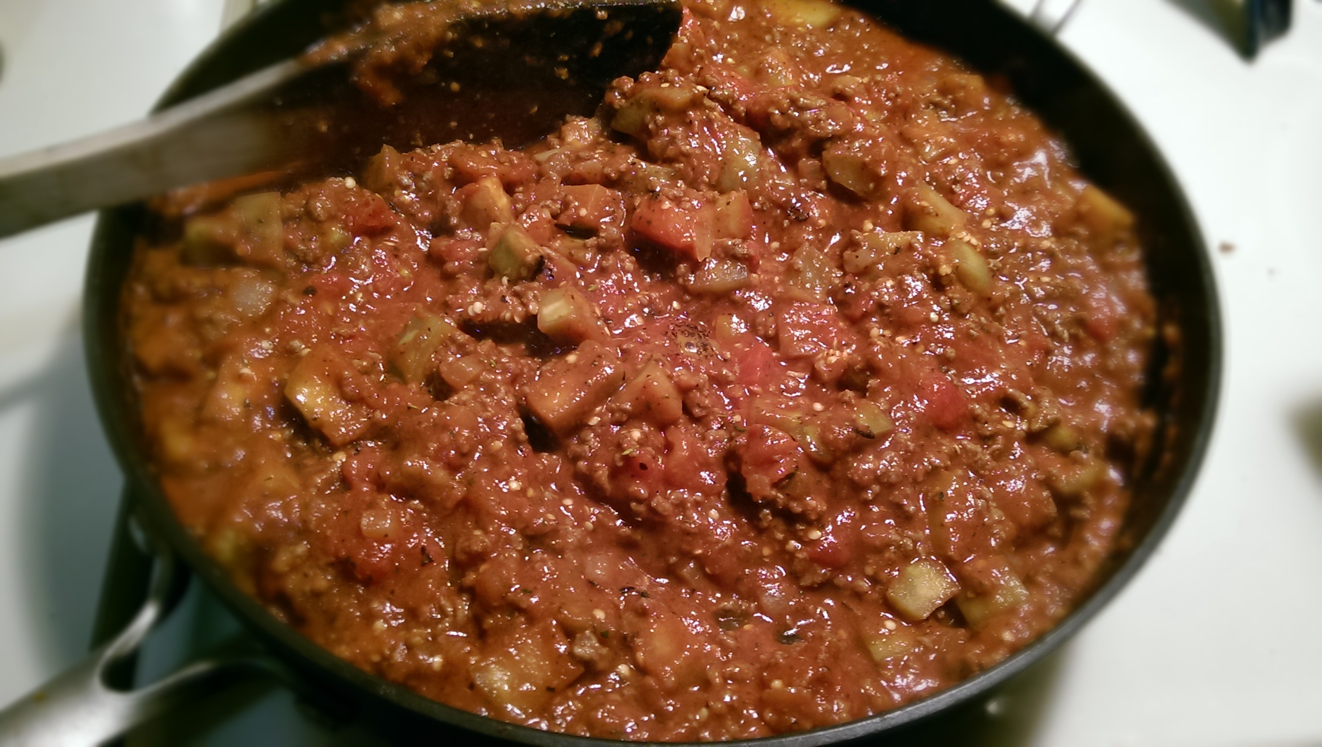 The most exciting part of making my ragout this time around was that it was made with two freshly grown eggplants picked right from my very own container garden. Â #humblebrag One large one would probably be enough. Feel free to adjust the quantity of both the beef and the eggplant based on the ratio that you want to have in your sauce.
