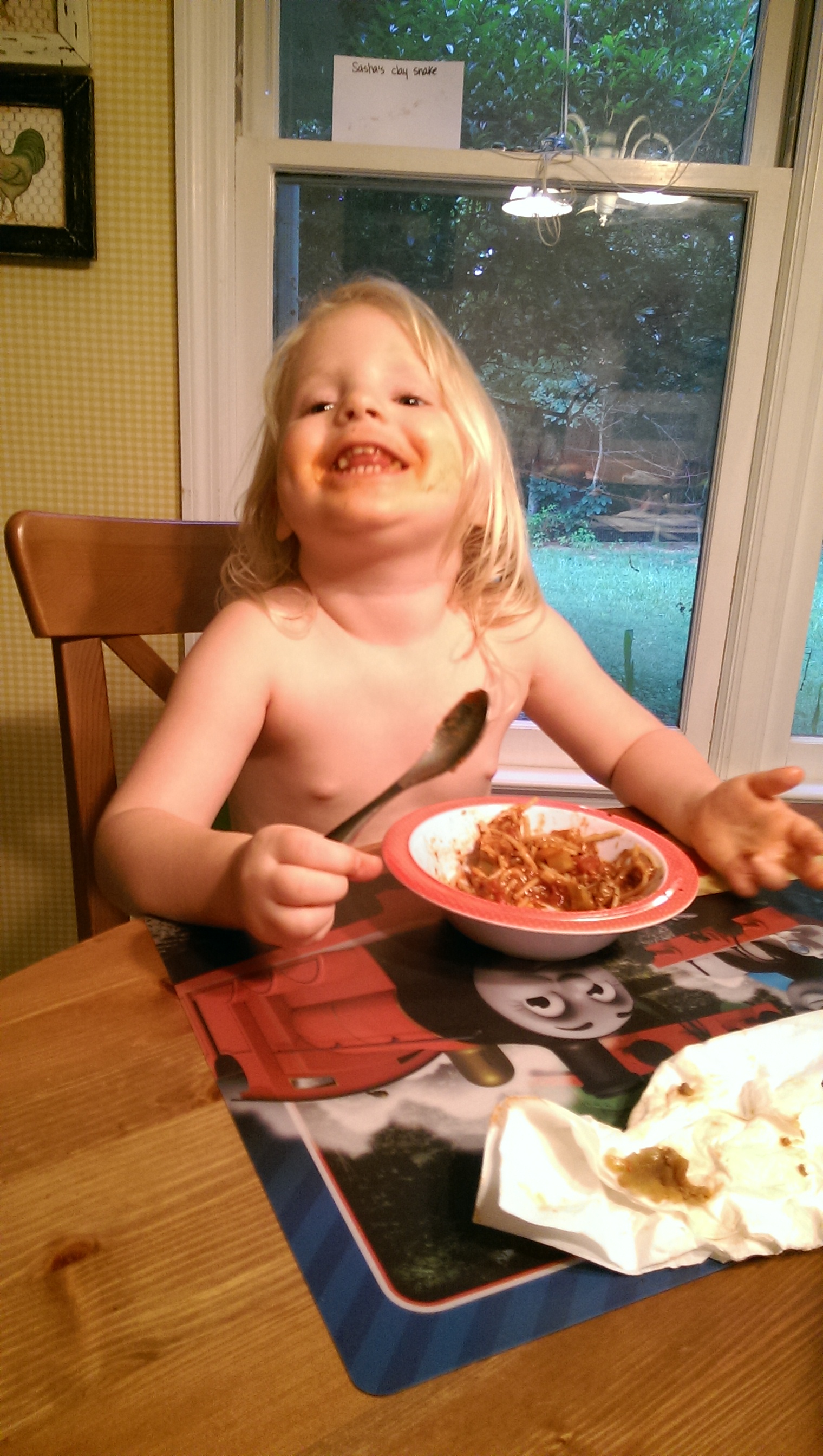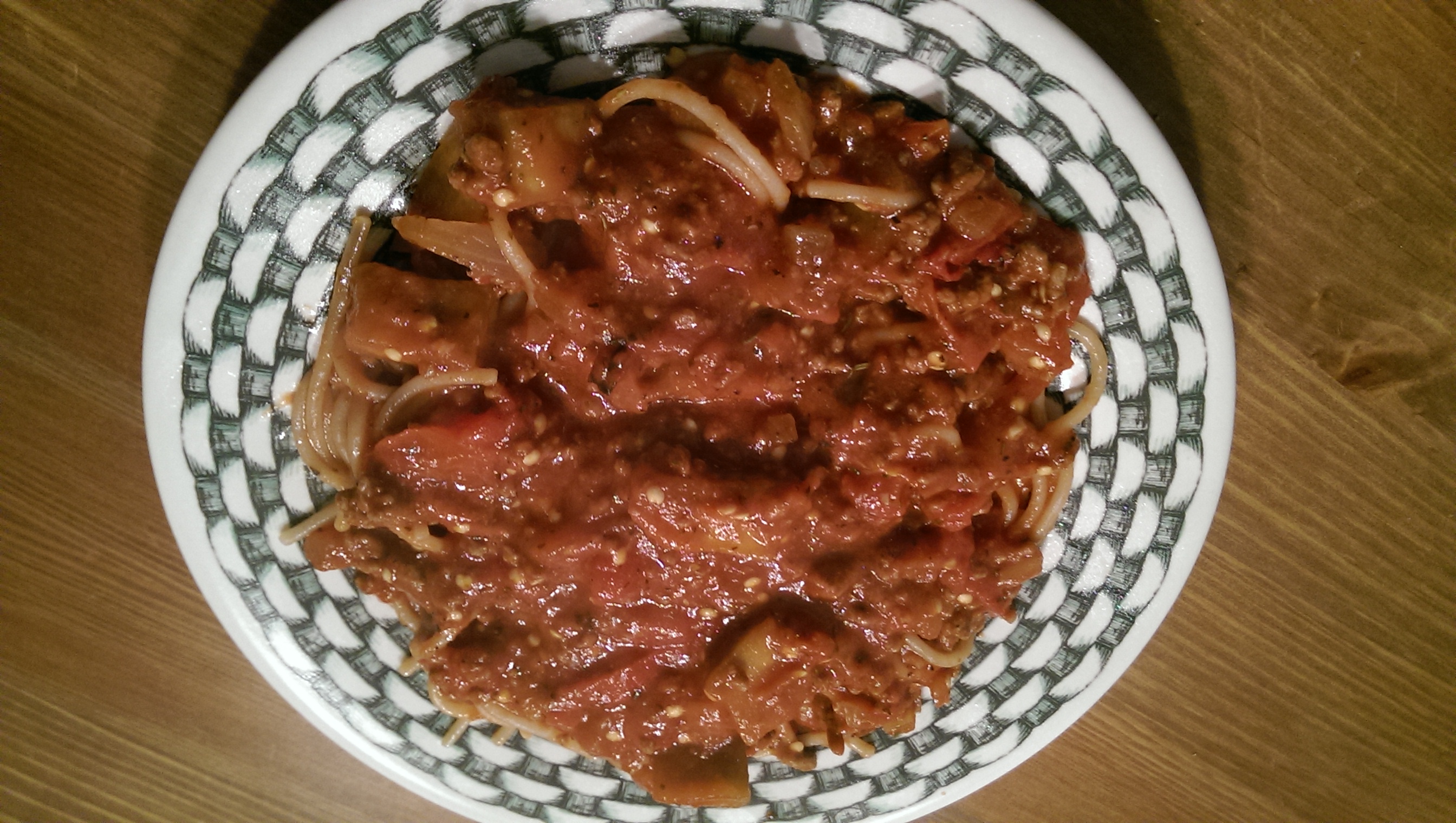 Cover and simmer the sauce until the eggplant basically turns to mush. When you think that it’s getting close to being finished, get going on the pasta. If you are roasting spaghetti squash like I usually do, you should be about ready to take it out of the oven if it’s not already cooling off to get spaghettied.